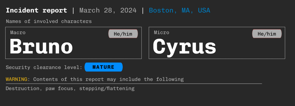 And then, with the same indifference the titan had shown to everything else that had crumbled under his feet, the paw fell again, directly onto the tiny avian. Cyrus was in an instant flattened like a pancake, the soft underside of the owl’s foot exerting extraordinary force on the poor bird’s body.